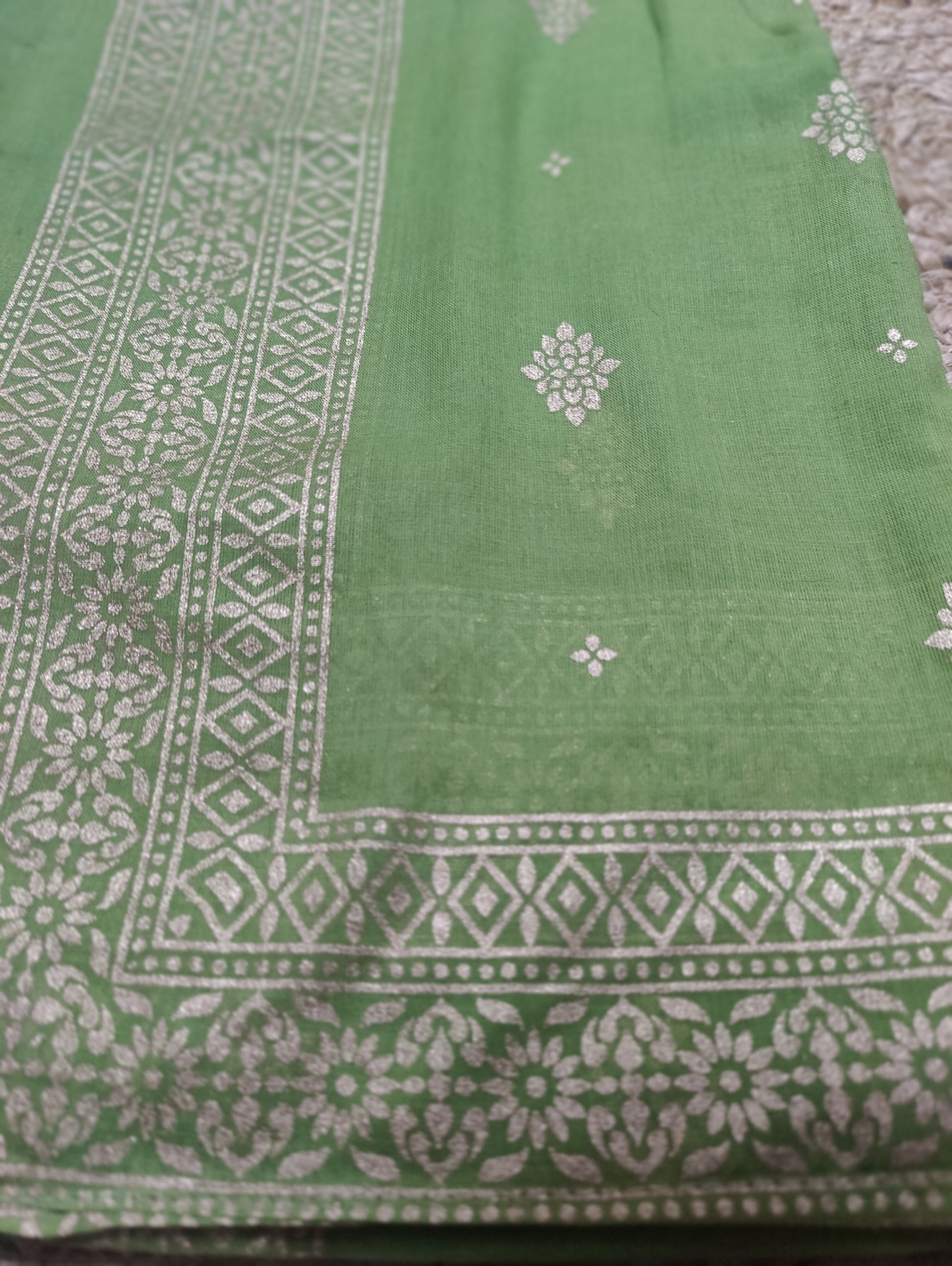 Work - Zari and thread embroidered sides with all over front floral design